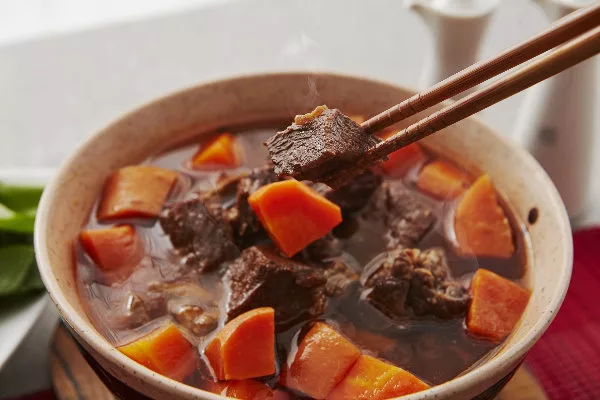 良金清燉牛肉爐,將金門高粱牛的帶骨牛肉與肉塊