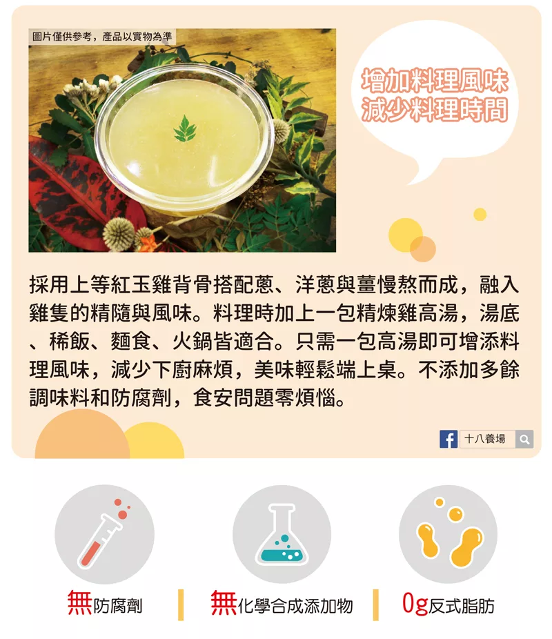→→→→更多詳細”【十八養場】精煉雞高湯 500g”介紹請點我
