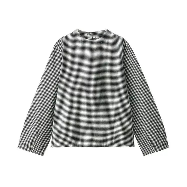 商品說明: [MUJI無印良品]女新疆棉法蘭絨套衫L黑格紋