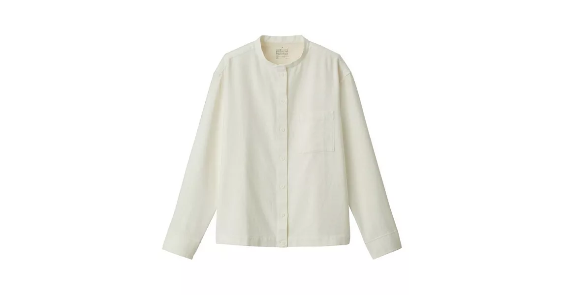 商品說明: [MUJI無印良品]女新疆棉法蘭絨立領襯衫L白色