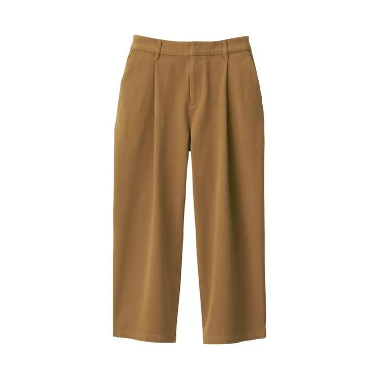 商品說明: [MUJI無印良品]女有機棉混縱橫彈性綾織舒適打摺八分褲S摩卡棕