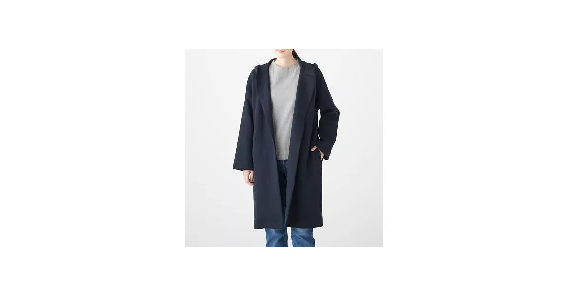 商品描述: [MUJI無印良品]女棉混二重織附帽大衣XS~S暗藍