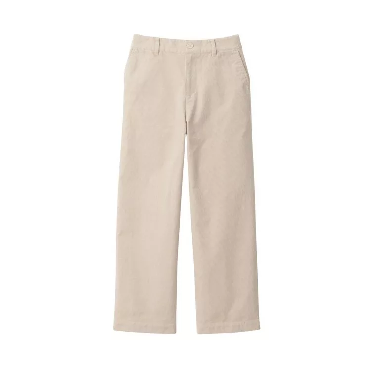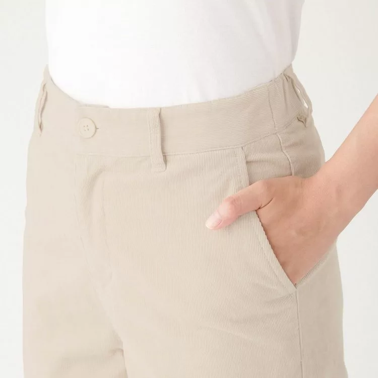 品名:女有機棉混彈性燈芯絨舒適寬擺褲柔白M