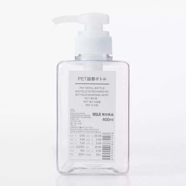 [MUJI無印良品]PET補充瓶/透明.400ml(S)訂購網址: https://www.books.com.tw/exep/assp.php/87926/products/N001070351?utm_source=87926&utm_medium=ap-books&utm_content=recommend&utm_campaign=ap-201903