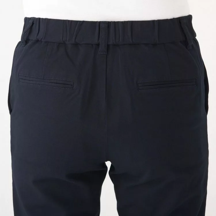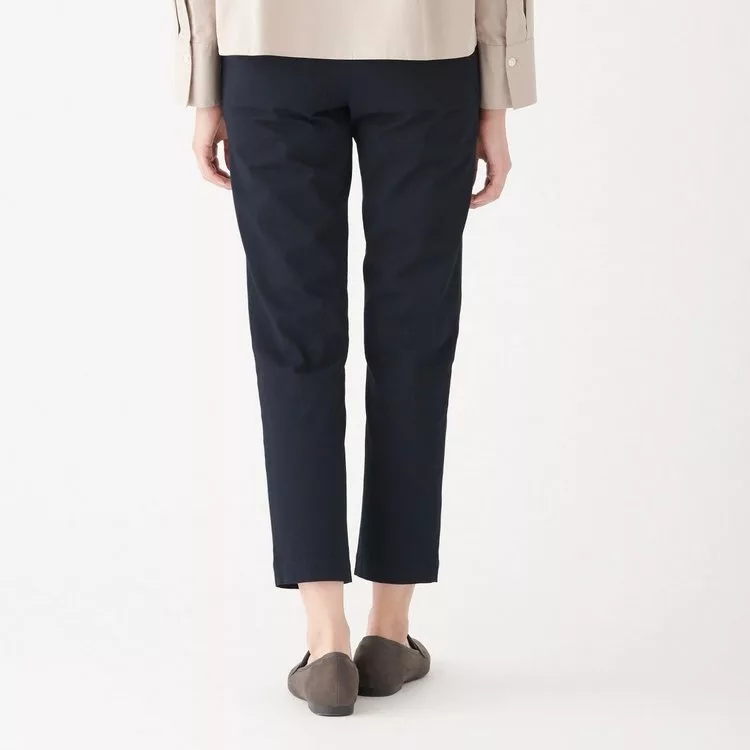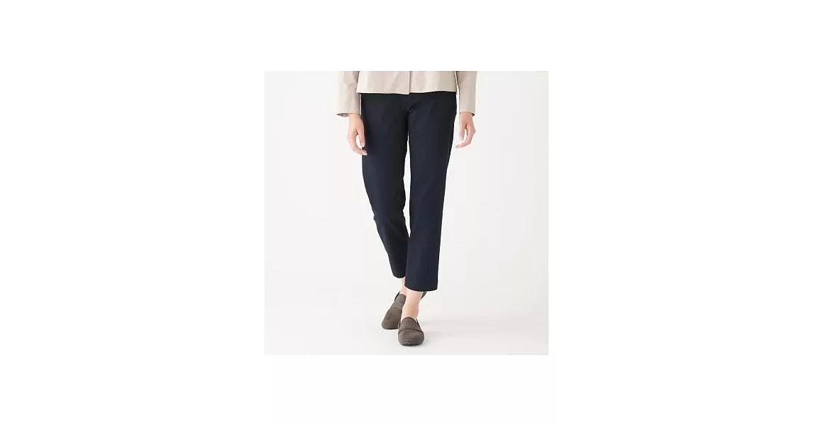 商品描述: [MUJI無印良品]女有機棉混縱橫彈性綾織舒適boy fit九分褲S深藍